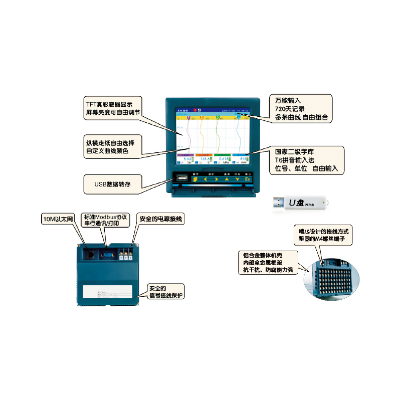 提供曲線顯示、棒圖顯示、數字顯示、總覽顯示等多種中文畫麵